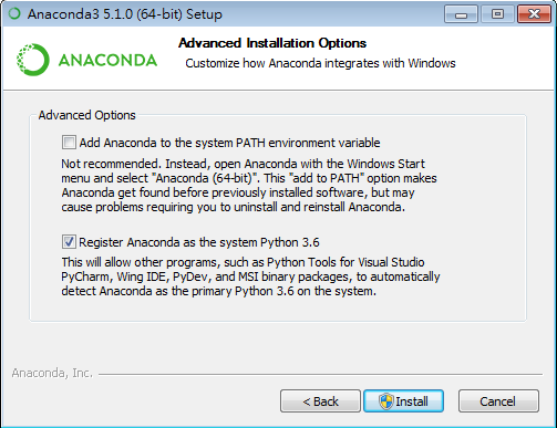 下載 Python 3版本後進行安裝,在安裝過程中會建議你不要將 Anaconda加入系統環境變數中 (windows系統)